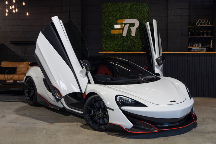 A pristine McLaren 600LT finished in White with black and orange interior.